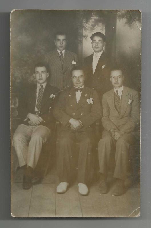 ** BEŞ ŞIK BEYEFENDİ ESKİ DÖNEM FOTOĞRAF ** 14 x 9 cm.ebadında,arka yüzü yazısız,bir mekanda oturmuş ve arkada duran beş yakışıklı ve şık beyefendinin orijinal fotoğrafıdır..