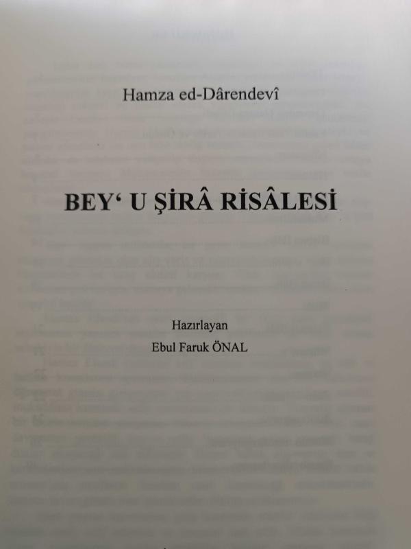 BEY' U ŞİRA RİSÂLESİ - Hamza ed-Dârendevî, Ebul Faruk ÖNAL tarafından kaleme alınmıştır. BEY' U ŞİRA RİSÂLESİ - Hamza ed-Dârendevî adlı eser Türkçe dilindedir.