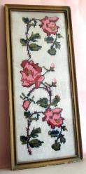 BEYAZ ETAMİN ÜZERİ KANAVİÇE ÇİÇEKLİ CAMLI AHŞAP ÇERÇEVE 58X25 CM