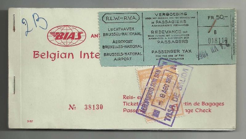 ** BIAS ANTWERP / BELÇİKA ULUSLARARASI HAVA SERVİSİ YOLCU UÇAK BİLETİ ** Kapanan şirketin eskiden kalan,kapaklı ve çok iyi kondüsyonda uçak yolcu biletidir...