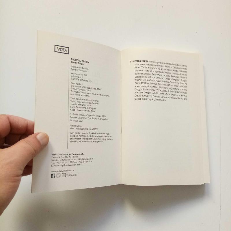 BİLİMSEL DEVRİM (2. EL), STEVEN SHAPIN tarafından kaleme alınmıştır. Eser SİBEL CANTEMİR editörlüğünde hazırlanmıştır. Kitap 2021 yılında VADİ YAYINCILIK tarafından [ İSTANBUL] 978-605-9114-19-6 ISBN kodu ile yayınlanmıştır. Satışta olan kitap, yayınevinin 1. baskısıdır. Bu baskının çevirisi AYŞEGÜL YURDAÇALIŞ tarafından yapılmıştır. 264 sayfadır. Sayfa bilgisi 2. HAMUR olarak belirtilmiştir. BİLİMSEL DEVRİM (2. EL) adlı eser Türkçe dilindedir.