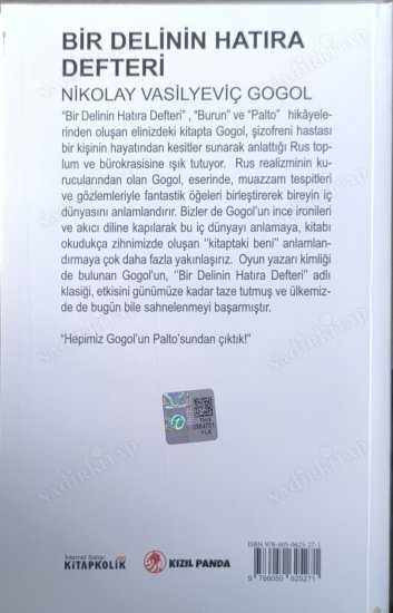 BİR DELİNİN HATIRA DEFTERİ, NİKOLAY VASİLYEVİÇ GOGOL tarafından kaleme alınmıştır. Kitap 2023 yılında KIZIL PANDA tarafından yayınlanmıştır. 128 sayfadır. BİR DELİNİN HATIRA DEFTERİ adlı eser Türkçe dilindedir.