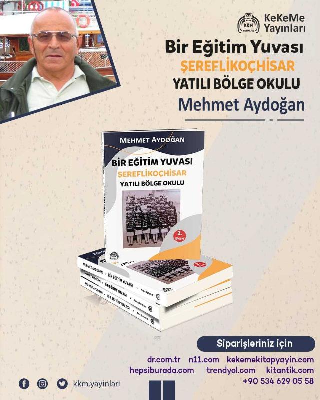 BİR EĞİTİM YUVASI (ŞEREFLİKOÇHİSAR YATILI BÖLGE OKULU), MEHMET AYDOĞAN tarafından kaleme alınmıştır. Eser Alaattin Topçu editörlüğünde hazırlanmıştır. Kitap 2021 yılında KeKeMe Yayınları tarafından [Ankara] 978-625-7792-24-0 ISBN kodu ile yayınlanmıştır. Satışta olan kitap, yayınevinin 2. baskısıdır. 230 sayfadır. BİR EĞİTİM YUVASI (ŞEREFLİKOÇHİSAR YATILI BÖLGE OKULU) adlı eser Türkçe dilindedir.