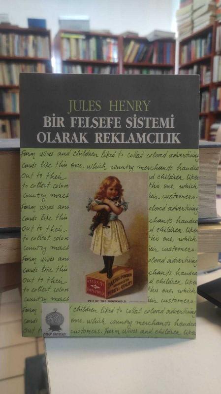 BİR FELSEFE SİSTEMİ OLARAK REKLAMCILIK, JULES HENRY tarafından kaleme alınmıştır. Kitap 1989 yılında ÇIDAM YAYINLARI tarafından yayınlanmıştır. Bu baskının çevirisi BURÇAK DAĞISTANLI tarafından yapılmıştır. 96 sayfadır. BİR FELSEFE SİSTEMİ OLARAK REKLAMCILIK adlı eser Türkçe dilindedir.