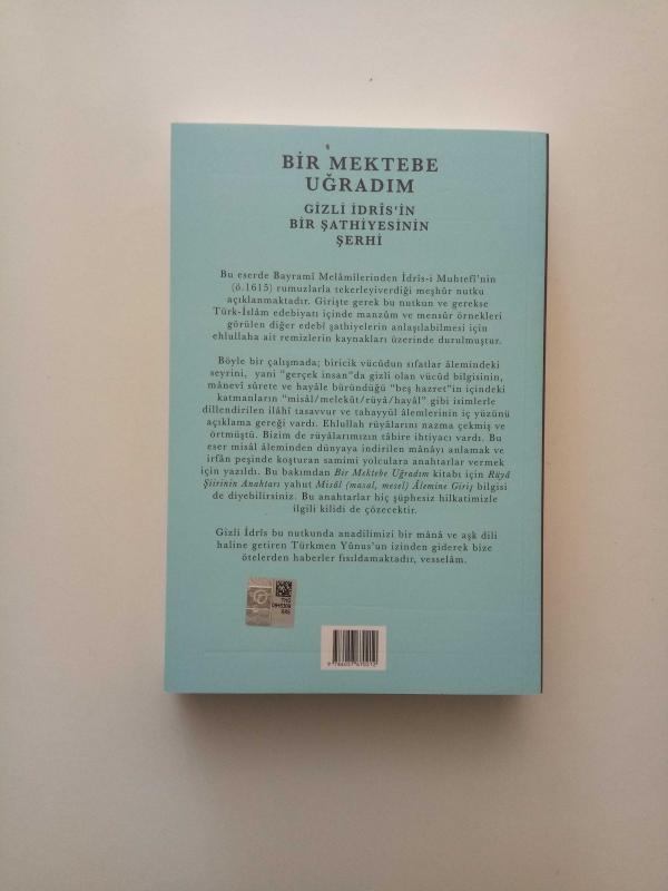 Bu eserde Bayramî Melâmîlerinden İdrîs-i Muhtefî’nin (ö. 1615) rumuzlarla tekerleyiverdiği meşhûr nutku açıklanmaktadır. Girişte gerek bu nutkun ve gerekse Türk-İslâm edebiyatı içinde manzûm ve mensûr örnekleri görülen diğer edebî şathiyelerin anlaşılabilmesi için ehlullaha ait remizlerin kaynakları üzerinde durulmuştur. Böyle bir çalışmada; biricik vücûdun sıfatlar âlemindeki seyrini, yani “gerçek insan”da gizli olan vücûd bilgisinin, mânevî sûrete ve hayâle büründüğü “beş hazret”in içindeki katmanların “misâl/melekût/rüyâ/hayâl” gibi isimlerle dillendirilen ilâhî tasavvur ve tahayyül âlemlerinin iç yüzünü açıklama gereği vardı. Ehlullah rüyâlarını nazma çekmiş ve örtmüştü. Bizim de rüyâlarımızın tâbire ihtiyacı vardı. Bu eser misâl âleminden dünyaya indirilen mânâyı anlamak ve irfân peşinde koşturan samimi yolculara anahtarlar vermek için yazıldı. Bu bakımdan Bir Mektebe Uğradım kitabı için Rüyâ Şiirinin Anahtarı yahut Misâl (masal, mesel) Âlemine Giriş Bilgisi de diyebilirsiniz. Bu anahtarlar hiç şüphesiz hilkatimizle ilgili kilidi de çözecektir. Gizli İdrîs bu nutkunda anadilimizi bir mânâ ve aşk dili haline getiren Türkmen Yûnus’un izinden giderek bize ötelerden haberler fısıldamaktadır, vesselâm.