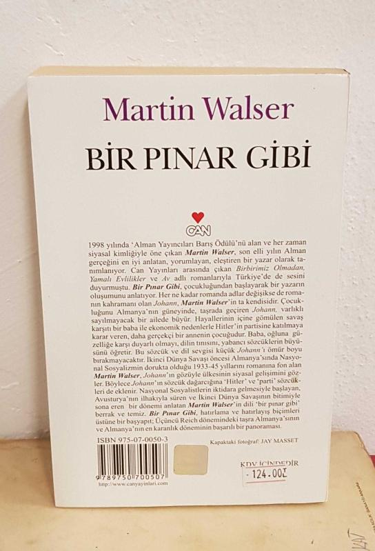 BİR PINAR GİBİ, MARTIN WALSER tarafından kaleme alınmıştır. Kitap 2001 yılında CAN YAYINLARI tarafından [İSTANBUL] yayınlanmıştır. Satışta olan kitap, yayınevinin 1. baskısıdır. Bu baskının çevirisi YASEMİN BAYER tarafından yapılmıştır. 356 sayfadır. BİR PINAR GİBİ adlı eser Türkçe dilindedir.