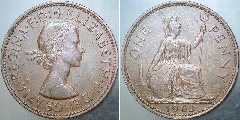 BİRLEŞİK KRALLIK 1 PENNY 1962. KRALİÇE II. ELİZABETH GENÇ BÜST. 31 mm ÇAPINDA BAKIR PARA. İNGİLTERE., 4 ay önce satışa sunulmuştur.