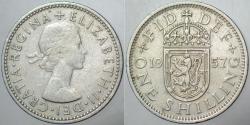 BİRLEŞİK KRALLIK 1 ŞİLİN 1957 İSKOÇYA ARMALI. KRALİÇE II. ELİZABETH GENÇ BÜST. 23 mm ÇAPINDA. İNGİLTERE.