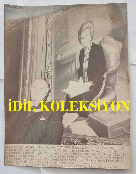 BİRLEŞİK KRALLIK ESKİ BAŞBAKANI MARGARET THATCHER'IN HABER AJANSI BASIM FOTOĞRAFI - NEWS AGENCY PHOTO OF FORMER UNITED KINGDOM PRIME MINISTER MARGARET THATCHER - 23 x 18 cm EBADINDA - RESSAM LEONARD BODEN, MARGARET THATCHER'IN PORTRESİNİ YAPTI. - İNGİLTERE SİYASİ TARİHİ - ARTIST LEONARD BODEN CREATED A PORTRAIT OF MARGARET THATCHER., en son bir ay önce güncellenmiştir.