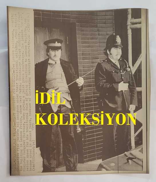 BİRLEŞİK KRALLIK ESKİ BAŞBAKANI MARGARET THATCHER'IN HABER AJANSI BASIM FOTOĞRAFI - NEWS AGENCY PHOTO OF FORMER UNITED KINGDOM PRIME MINISTER MARGARET THATCHER - 23 x 19 cm EBADINDA - 1979. GELENEKSEL ÜNİFORMALARININ ALTINDA KURŞUN GEÇİRMEZ YELEK VE TABANCA TAŞIYAN İKİ LONDRA POLİSİ, BATI ALMANYA ŞANSÖLYESİ HELMUT SCHMİDT VE BAŞBAKAN MARGARET THATCHER'IN ORTAK BASIN TOPLANTISI DÜZENLEDİĞİ LONDRA'DAKİ BİNANIN ÖNÜNDE DURUYOR. - İNGİLTERE SİYASİ TARİHİ - (TWO LONDON POLICEMAN, WEARING PROTECTIVE FLAK JACKETS AND HANDGUNS UNDER THEIR TRATIDIONAL UNIFORMS, STAND OUTSIDE THE BULDING IN LONDON FRIDAY, WHERE WEST GERMAN CHANCELLOR HELMUT SCHMIDT, AND PRIME MINISTER MARGARET THATCHER, WERE GIVING A JOINT PRESS CONFERENCE. 1979.), en son 2 ay önce güncellenmiştir.