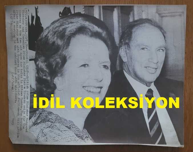 BİRLEŞİK KRALLIK ESKİ BAŞBAKANI MARGARET THATCHER'IN HABER AJANSI BASIM FOTOĞRAFI - NEWS AGENCY PHOTO OF FORMER UNITED KINGDOM PRIME MINISTER MARGARET THATCHER - 24 x 19 cm EBADINDA - İNGİLİZ BAŞBAKANI MARGARET THATCHER VE KANADA BAŞBAKANI PİERRE TRUDEAU, PAZARTESİ GÜNÜ OTTAWA'DA YAPTIKLARI GÖRÜŞME SIRASINDA KAMERALARA GÜLÜMSÜYORLAR. İNGİLİZ BAŞBAKANI, BAKANLARLA KABİNE ODASINDA YAPTIĞI TOPLANTININ ARDINDAN TRUDEAU İLE PARLAMENTO TEPESİ'NDEKİ RESMİ OFİSİNDE BİR ARAYA GELDİ. 1983 - İNGİLTERE SİYASİ TARİHİ - BRITISH PRIME MINISTER MRS MARGARET THATCHER AND CANADIAN PRIME MINISTER PIERRE TRUDEAU SMILS FOR THE CAMERAS AS THE TWO SIT DOWN FOR TALKS IN OTTAWA MONDAY. THE BRITISH PRIME MINISTER MET WITH TRUDEAU IN HIS OFFICIAL PARLIAMENT HILL OFFICE AFTER A MEETING IN THE CABINET ROOM WITH MINISTERS. 1983, en son bir ay önce güncellenmiştir.