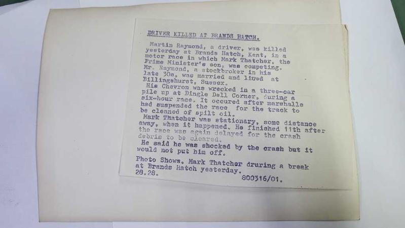 BİRLEŞİK KRALLIK ESKİ BAŞBAKANI MARGARET THATCHER'IN OĞLU MARK THATCHER'IN ORİJİNAL FOTOĞRAFI - ORIGINAL PHOTOGRAPH OF FORMER UNITED KINGDOM PRIME MINISTER MARGARET THATCHER'S SON MARK THATCHER - 20 x 15 cm EBADINDA - MARTİN RAYMOND ADLI BİR YARIŞ PİLOTU, DÜN KENT'TEKİ BRANDS HATCH'TE, BAŞBAKANIN OĞLU MARK THATCHER'IN DA YARIŞTIĞI BİR MOTOR YARIŞINDA HAYATINI KAYBETTİ. 30'LU YAŞLARININ SONLARINDA OLAN VE BORSACI OLAN BAY RAYMOND, EVLİYDİ VE SUSSEX'TEKİ BİLLİNGSHURST'TE YAŞIYORDU. MARK THATCHER DÜN BRANDS HATCH'TE BİR MOLA SIRASINDA. - İNGİLTERE SİYASET TARİHİ - (MARTIN RAYMOND, A DRIVER, WAS KILLED YESTERDAY AT BRANDS HATCH, KENT, IN A MOTOR RACE IN WHICH MARK THATCHER, THE PRIME MINISTER'S SON, WAS COMPETING. MR. RAYMOND A STOCKBROKER IN HIS LATE 30'S, WAS MARRIED AND LIVED AT BILLINGSHURTS, SUSSEX. MARK THATCHER DRURING A BREAK AT BRANDS HATCH YESTERDAY.) - ÖZEL ARŞİV, dün satışa sunulmuştur.