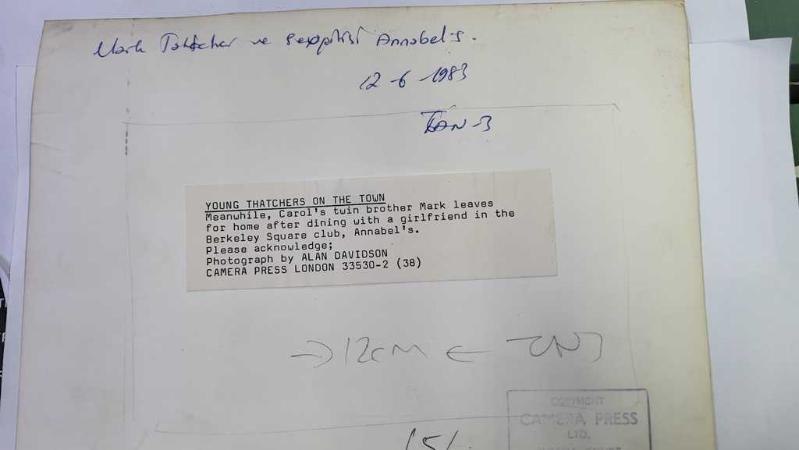BİRLEŞİK KRALLIK ESKİ BAŞBAKANI MARGARET THATCHER'IN OĞLU MARK THATCHER'IN ORİJİNAL FOTOĞRAFI - ORIGINAL PHOTOGRAPH OF FORMER UNITED KINGDOM PRIME MINISTER MARGARET THATCHER'S SON MARK THATCHER - 25 x 20 cm EBADINDA - BU SIRADA CAROL'IN İKİZ KARDEŞİ MARK, BERKELEY SQUARE'DEKİ ANNABEL'S ADLI GECE KULÜBÜNDE KIZ ARKADAŞIYLA YEMEK YEDİKTEN SONRA EVE DOĞRU YOLA KOYULUR. - İNGİLTERE SİYASET TARİHİ - (MEANWHILE, CAROL'S TWIN BROTHER MARK LEAVES FOR HOME AFTER DINING WITH A GIRLFRIEND IN THE BERKELEY SQUARE CLUB, ANNABEL'S. CAMERA PRESS LONDON. ALAN DAVIDSON) - ÖZEL ARŞİV, dün satışa sunulmuştur.