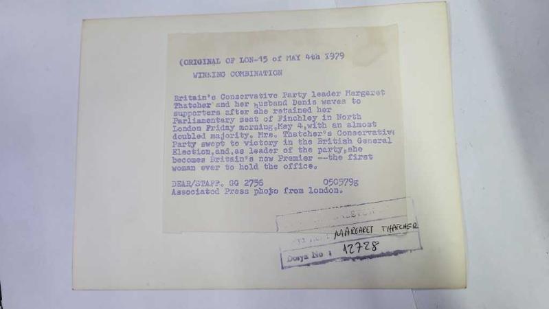 BİRLEŞİK KRALLIK ESKİ BAŞBAKANI MARGARET THATCHER'IN ORİJİNAL FOTOĞRAFI - ORIGINAL PHOTOGRAPH OF FORMER UNITED KINGDOM PRIME MINISTER MARGARET THATCHER - 20 x 15 cm EBADINDA - İNGİLTERE MUHAFAZAKAR PARTİ LİDERİ MARGARET THATCHER VE EŞİ DENİS, CUMA SABAHI KUZEY LONDRA'DAKİ FİNCHLEY'DEKİ MİLLETVEKİLİ KOLTUĞUNU KORUMASININ ARDINDAN DESTEKÇİLERİNE EL SALLIYOR. BAYAN THATCHER'IN MUHAFAZAKAR PARTİSİ, İNGİLİZ GENEL SEÇİMLERİNDE EZİCİ BİR ZAFER KAZANDI VE PARTİ LİDERİ OLARAK İNGİLTERE'NİN YENİ BAŞBAKANI OLDU; BU GÖREVİ ÜSTLENEN İLK KADIN. - İNGİLTERE SİYASET TARİHİ - (BRITAIN'S CONSERVATIVE PARTY LEADER MARGARET THATCHER AND HER HUSBAND DENIS WAVES TO SUPPORTERS AFTER SHE RETAINED HER PARLIAMENTARY SEAT OF FINCHLEY IN NORTH LONDON FRIDAY MORNING. MRS. THATCHER'S CONSERVATIVE PARTY SWEPT TO VICTORY IN THE BRITISH GENERAL ELECTION, AND, AS LEADER OF THE PARTY, SHE BECOMES BRITAIN'S NEW PREMIER THE FIRST WOMAN EVER TO HOLD THE OFFICE. MAY 4th 1979) - ÖZEL ARŞİV, 3 gün önce satışa sunulmuştur.