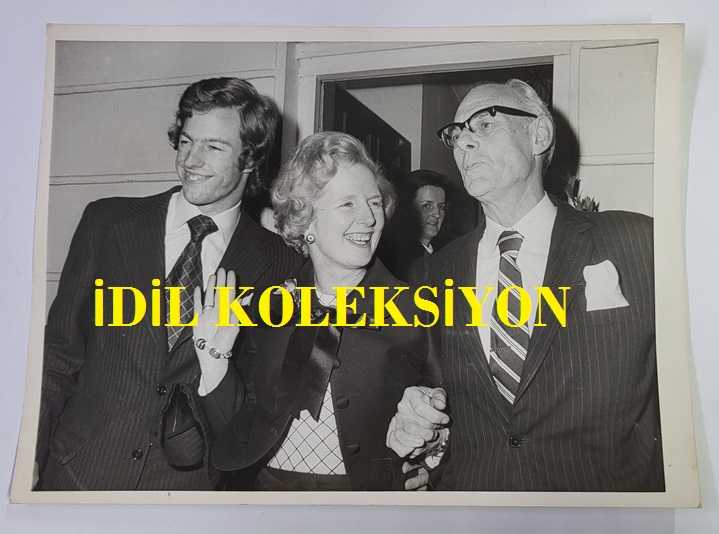 BİRLEŞİK KRALLIK ESKİ BAŞBAKANI MARGARET THATCHER'IN ORİJİNAL FOTOĞRAFI - ORIGINAL PHOTOGRAPH OF FORMER UNITED KINGDOM PRIME MINISTER MARGARET THATCHER - 20 x 15 cm EBADINDA - İNGİLTERE'NİN MUHALEFETTEKİ MUHAFAZAKAR PARTİSİ'NİN YENİ SEÇİLEN LİDERİ BAYAN MARGARET THATCHER, 11 ŞUBAT SALI AKŞAMI LONDRA'DA, DÖRT ERKEK RAKİBİNE KARŞI KAZANDIĞI ZAFERİ ONURLANDIRMAK İÇİN DÜZENLENEN RESEPSİYONA KATILMADAN ÖNCE EŞİ DENİS (SAĞDA) VE OĞLU MARK İLE EL SALLAYIP GÜLÜMSÜYOR. - İNGİLTERE SİYASET TARİHİ - (MRS MARGARET THATCHER, NEWLY ELECTED LEADER OF BRITAIN'S OPPOSITION CONSERVATIVE PARTY, SHARES A WAVE AND A SMILE WITH HER HUSBAND DENIS, RIGHT, AND SON MARK, IN LONDON, TUESDAY EVENING, FEBRUARY 11TH, BEFORE ATTENDING RECEPTION HONOURING HER VICTORY OVER FOUR MALE OPPONENTS. 1979) - ÖZEL ARŞİV, dün satışa sunulmuştur.