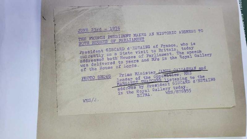 BİRLEŞİK KRALLIK ESKİ BAŞBAKANI MARGARET THATCHER'IN ORİJİNAL FOTOĞRAFI - ORIGINAL PHOTOGRAPH OF FORMER UNITED KINGDOM PRIME MINISTER MARGARET THATCHER - 20 x 15 cm EBADINDA -MARGARET THATCHER, JAMES CALLAGHAN İLE YAN YANA OTURURKEN ÇEKİLMİŞ BİR KARE. (THE FRENCH PRESIDENT MAKES AN HISTORIC ADDRESS TO BOTH HOUSES OF PARLIAMENT. PRESIDENT GISCARD D'ESTAING OF FRANCE, WHO IS CURRENTLY ON A STATE VISIT TO BRITAIN, TODAY ADDRESSED BOTH HOUSES OF PARLIAMENT. THE SPEACH OF THE HOUSE OF LORDS. PRIME MINISTER JAMES CALLAGHAN AND MARGARET THATCHER LISTENING TO THE ADDRESS BY PRESIDENT GISCARD D'ESTAING IN THE ROYAL GALLERY TODAY. JUNE 32rd 1975. ) - ÖZEL ARŞİV, 8 gün önce satışa sunulmuştur.