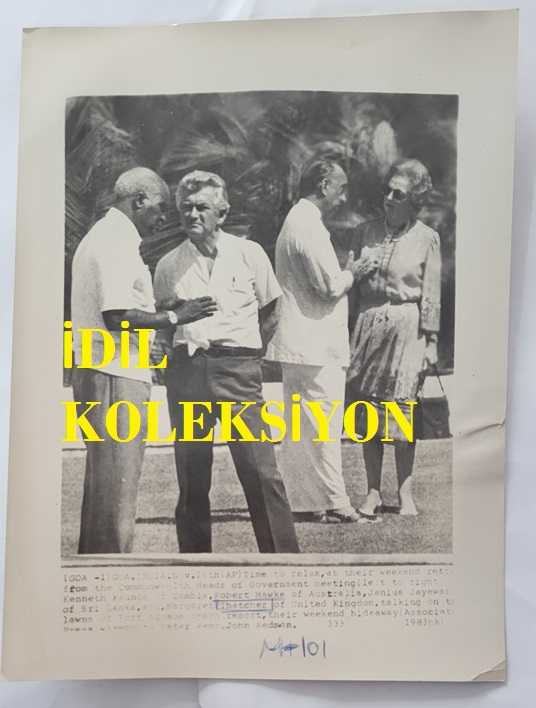BİRLEŞİK KRALLIK ESKİ BAŞBAKANI MARGARET THATCHER'IN ORİJİNAL HABER AJANSI BASIM FOTOĞRAFI - ORIGINAL NEWS AGENCY PHOTO OF FORMER UNITED KINGDOM PRIME MINISTER MARGARET THATCHER - 24 x 18 cm EBADINDA . - İNGİLTERE SİYASİ TARİHİ - MARGARET THATCHER, KENNETH KAUNDA, ROBERT HAWKE, JANIUS JAYEWAR. 1983, 2 saat önce satışa sunulmuştur.