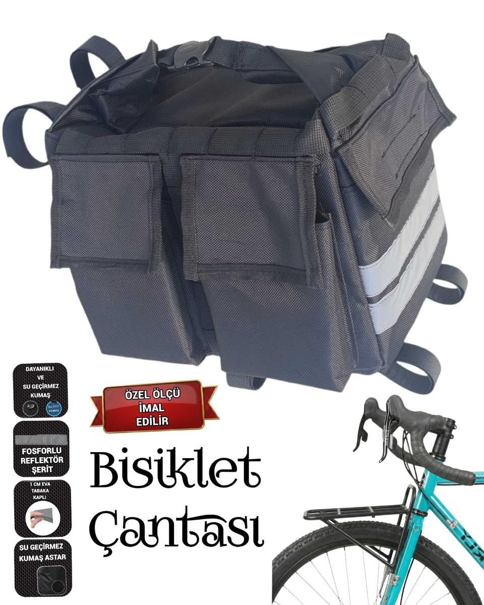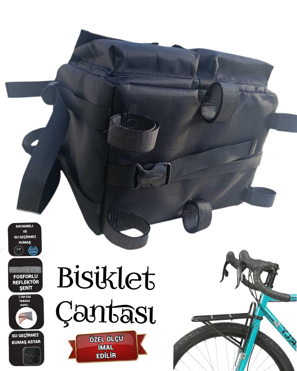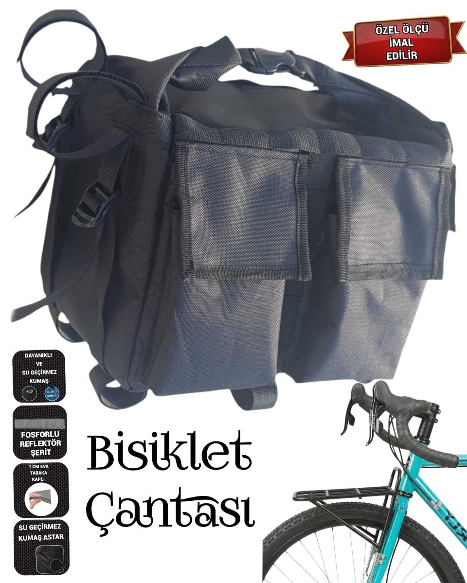 -Sevbags Bisiklet Çantası -1900 denye İthal Su İtici Kumaştan İmal Edilmiştir -270 Denye Su İtici Kumaş İle Astarlanmıştır -1cm Eva Tabaka İle Kaplanmıştır -Önde 2 Adet Kapaklı Cep, Arkada 1 Adet Kapaklı Büyük Cep, Yanda 1 Adet Kapaklı Ve Reflektör Şeritli Cep Olmak Üzere 4 Adet Cep Mevcuttur -Kapama Şekli Cırt Kapama Ve Katlanarak Klips Geçme Şeklindedir -Çanta Üzerinde Eşyaları Asmal İçin Kemer Toka Yerleri Mevcuttur -Yanda 2 Adet Çır4 Ve 2 Adet Kolon Askılı Ayarlı Kambur Toka, Altta 6 Adet Cırt Ve 1Adet Kolon Askılı Klips Geçme Bağlantısı Olmak Üzere Toplamda 11 Adet Bağlantı Aparatı Mevcuttur Çanta Ölçüleri Açık Hali Yükseklik 40cm, Genişlik 28cm ,Yan Körük Derinlik 20cm Kapalı Hali Yükseklik 24cm, Genişlik 28cm, Yan Körük Derinlik 20cm Ölçülerinde İmal Edilmiştir Özel Ölçü İmalat Yapılmaktadır