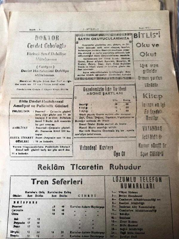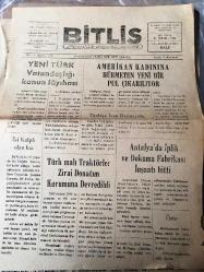 BİTLİS SİYASİ GAZETESİ-YEREL TAŞRA BASINI -3 MAYIS 1960-YIL :7 SAYI :1939- YENİ TÜRK VATANDAŞLIĞI KANUN LAYIHASI - İki kalpli olan kız -Amerika kadınına hürmetten yeni bir pul çıkarılıyor-Türk malı traktörler zirai donatım kurumuna devredildi- Antalya 'da iplik ve dokuma fabrikası inşaatı bitti - --Doktor Cevdet Geboloğlu Birinci Sınıf Dahiliye Mütehassısı-Sayın Okuyucularımıza -Bitlis 'i Oku VE Okut - Yıpranma, sararmalar, kupon kesiği ve yırtılmalar zamana bağlı olarak görülebilir.
