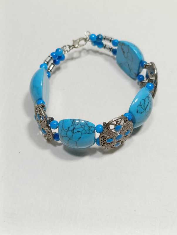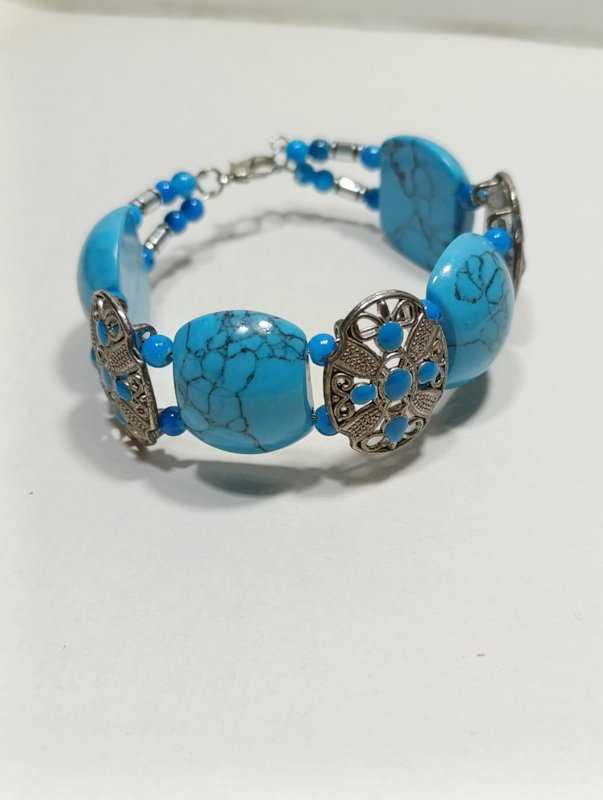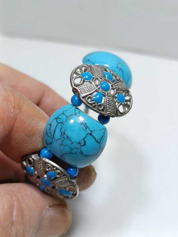 BL4----TURKUAZ TAŞLI BİLEKLİK başlıklı antika/koleksiyon objesi Avrupa menşe’lidir. 2000 ve sonrası dönemine aittir.