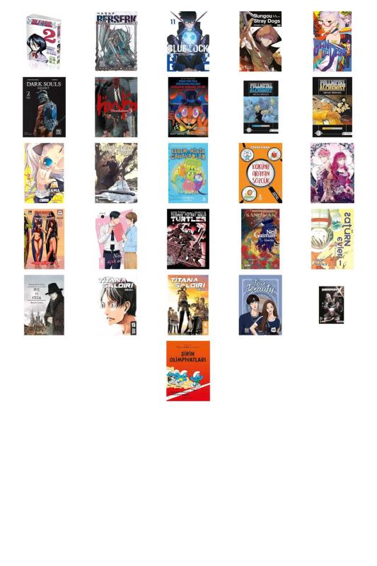 BLEACH 2 HOŞÇAKAL PARAKET: Hoşçakal Paraket İyi Geceler Kız Kardeş - Berserk 3 - Blue Lock Cilt 11 - Bungou Stray Dogs 9.Cilt - Dandadan 4. Cilt - Dark Souls: Kefaret 2 - Dorohedoro 3. Cilt - Fazbear'ın Korkunç Tipleri Grafik Roman Serisi 3 - Freddy'nin Pizza Dükkanı'nda Beş Gece - Full Metal Alchemist, Metal Simyacı, 8 - Fullmetal Alchemist - Metal Simyacı 04 (Kapak Değişebilir) - Kaguya-Sama - Aşk Savaştır 2 - Karanlık Yolun Efendisi 3 - Kerem ile Minik Canavarlar - Karanlıktaki Canavarlar: Çılgın Çizgi Romanlar - Kökünü Arayan Sözcük - Kötülerin Kaderi Yok Olmaktır 3 - Marvel Yaz Özel Sayısı - Neden Aşık Oluruz 1 - Ninja Kaplumbağalar Cilt 1 - Sandman: Uvertür - Satürn Evleri 1. Cilt - Suç ve Ceza: ( Çizgi Roman ) - Titana Saldırı 15 - Titana Saldırı 4 - True Beauty 6 - Weapon X 3 - Modern Savaş - Şirinler 11 - Şirin Olimpiyatları: Paskalya Şirinleri ve Şirinlerin Bahçesi