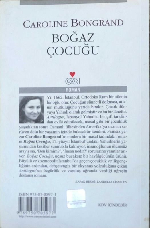 BOĞAZ ÇOCUĞU, Caroline Bongrand tarafından kaleme alınmıştır. Kitap 2005 yılında CAN YAYINLARI tarafından [İSTANBUL] 9789750705977 ISBN kodu ile yayınlanmıştır. Bu baskının çevirisi Saadet Özen tarafından yapılmıştır. 399 sayfadır. BOĞAZ ÇOCUĞU adlı eser Türkçe dilindedir.