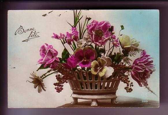 ** YABANCI BASIM ÇİÇEK KART ** Arkası yazılı,çil durumda çiçekli kartpostal... Bonne féte...