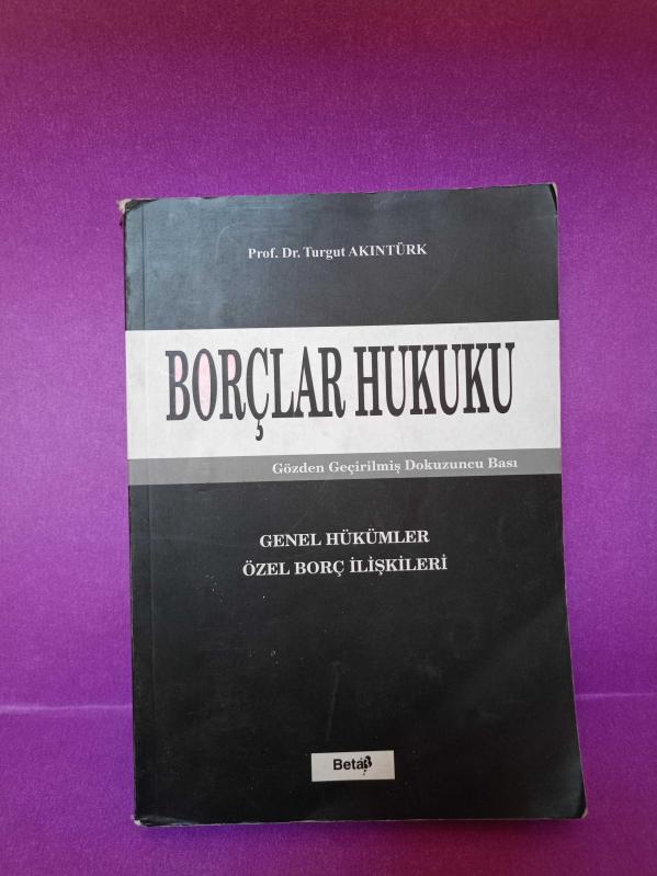 BORÇLAR HUKUKU "GENEL HÜKÜMLER - ÖZEL BORÇ İLİŞKİLERİ 2.EL, PROF.DR.TURGUT AKINTÜRK tarafından kaleme alınmıştır. Kitap 2003 yılında BETA tarafından [ANKARA] yayınlanmıştır. Satışta olan kitap, yayınevinin 9. baskısıdır. 295 sayfadır. Sayfa bilgisi 239 olarak belirtilmiştir. BORÇLAR HUKUKU "GENEL HÜKÜMLER - ÖZEL BORÇ İLİŞKİLERİ 2.EL adlı eser Türkçe dilindedir.