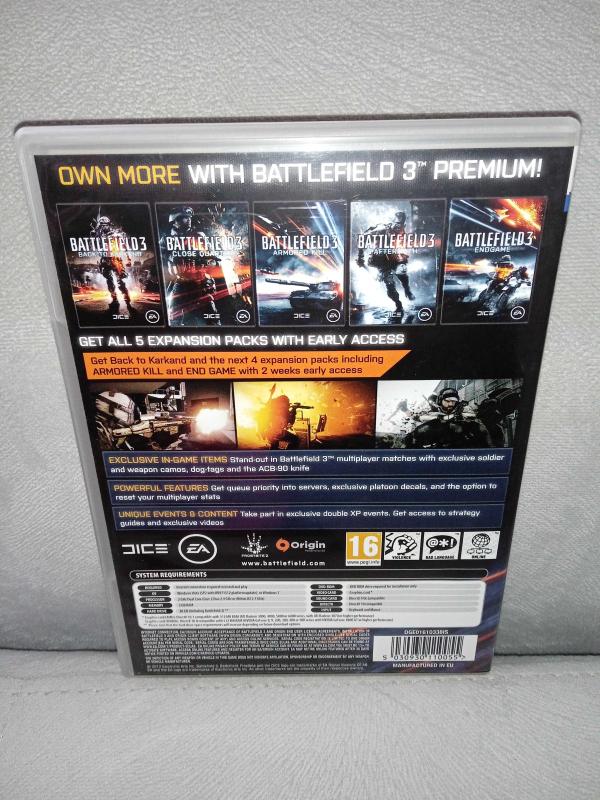 BOŞ Pc oyun kutusu Battlefield 3 premium. Orijinal. Key mevcut fakat kullanıldı mı bilmiyorum. Cd YOK. Kutu, cover temiz ve sağlam