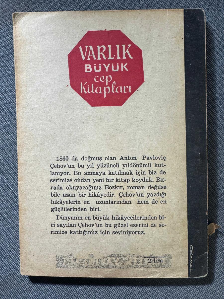 BOZKIR, Anton Çehov tarafından kaleme alınmıştır. Kitap 1960 yılında Varlık Cep tarafından yayınlanmıştır. Satışta olan kitap, yayınevinin 1. baskısıdır. Bu baskının çevirisi Mehmet Özgül tarafından yapılmıştır. 93 sayfadır. BOZKIR adlı eser Türkçe dilindedir.