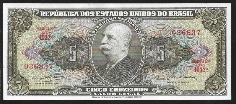 BREZİLYA ( 5 * CRUZEİROS ) 1962-64 - ÇİL ** RESİMDEKİ ÜRÜN SATIŞTADIR **
