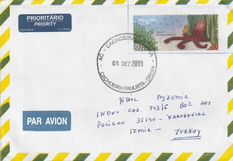 BREZİLYA'DAN TÜRKİYE'YE GÖNDERİLMİŞ AHTAPOT TEK PULLU TEMATİK ZARF., en son 1 yıl önce güncellenmiştir.