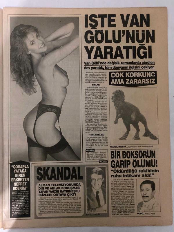 BUGÜN 2 GAZETESİ - 16 MART 1991 - TAM TAKIM 8 SAYFADIR -Mahmut Özişik-Selahattin Şentürk-Sinan Şentürk-Necati-Mahmut Estürk-Ziynet-Linda Blair-Hakkı Alsat-Franz Alt-BUGÜN-Darıca Sapığı Dehşet Saçıyor-14 Yaşındaki Kıza Bile Tecavüz Etti-Şimdiye Kadar Bir Polisi Bir Kahveciyi ve Abisini Öldürdü-Tecavüz Edip Öldürüyor-Ocağımızı Söndürdü-İşte Van Gölü’nün Yaratığı-Çok Korkunç Ama Zararsız-Skandal adlı eser Türkçe dilindedir. Eserin içeriğinde Türkçe dilinde bölümlere de yer verilmektedir.