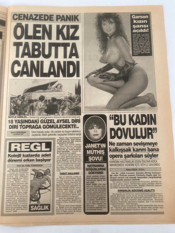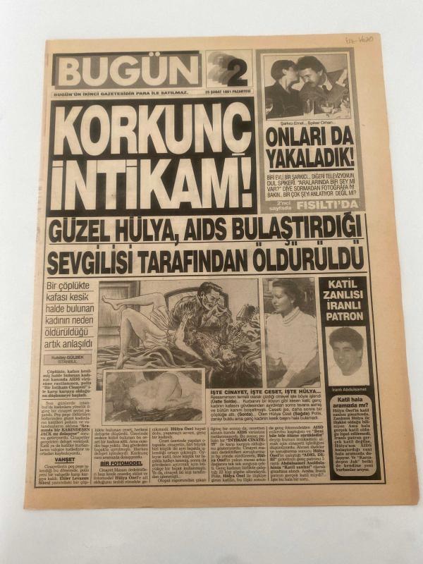BUGÜN 2 GAZETESİ - 25 ŞUBAT 1991 - TAM TAKIM 8 SAYFADIR -Hülya-Şarkıcı Emel-Spiker Orhan-Kubilay Gülbeyk-Mualla-Hz. Muhammed-Zerrin Erdoğan-Prof. Dr. Yıldız Tümerdem-Carmelo Bago-Reha Erus-Saliha Aydın-Zülküf Dede-Nuriye-İbrahim Ayaz-Melike-Üner Önder-Nuik Korkunç intikam-Güzel Hülya AIDS bulaştırdığı sevgilisi tarafından öldürüldü-Katil zanlısı İranlı patron-Kocamı gerdek gecesi bağladılar-Hz. Muhammed’e de büyü yapmışlardı-Ölen kız tabutta canlandı-Regl-Kolejli kızlarda adet dönemi erken başlıyor-Bu kadın dövülür-Mucize-Bombalar camileri vuramadı-Arka koltukta aşk-Aşk kurbanı-İstediğin cinste doğur-Karım keçi oldu-Bana yüz çevirme Nuriye’m-Zülküf Dede karısı sandığı keçisini hoca hoca dolaştırıyor Gülmece güldürmece-Üner Önder-Nuik adlı eser, Kitap > Süreli Yayınlar > Gazeteler > Türkiye > Genel > Günlük kategorisinde İkinci El olarak satıştadır.
