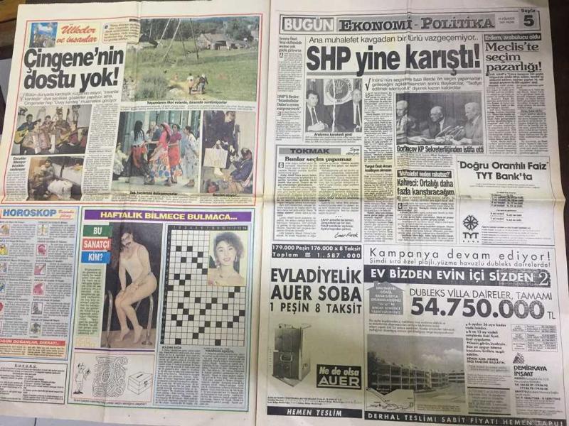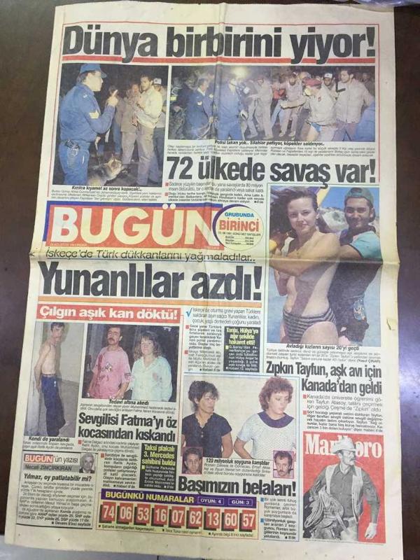 BUGÜN GAZETESİ - 25 AĞUSTOS 1991 - DÜNYA BİRBİRİNİ YİYOR, 72 ÜLKEDE SAVAŞ VAR - İSKEÇE'DE TÜRK DÜKKANLARINI YAĞMALADILAR - ZIPKIN TAYFUN AŞK AVI İÇİN KANADA'DAN GELDİ - TANJU ÇOLAK HÜLYA AVŞAR'A HAKARET ETTİ - SEVGİLİSİ FATMA'YI ÖZ KOCASINDAN KISKANDI - NECATİ ZİNCİRKIRAN - YASEMİN KOŞAL OYUNCULUKTA KARAR KILDI - KATİL AİLEDEN ÇIKTI, RAMAZAN CENGİL - GÖCEK BELEDİYESİ, ÇÖP TOPLAYANA TATİL BEDAVA, BEHZAT AKDOLUN - NEŞE TOPBAŞ - ÇİNGENE'NİN DOSTU YOK - SHP YİNE KARIŞTI - DENİZ BAYKAL, ERDAL İNÖNÜ - KRALIN ÖLECEĞİNİ 10 YIL ÖNCE BİLDİ - BESTAMİ MIZMIZ - GORBAÇOV PİYASALARI ALLAK BULLAK ETTİ - BU NASIL SSK? FENERBAHÇE, 8 ÜLKEDEN 15 FUTBOLCU DENENDİ - MEHMET ALİ YILMAZ, TRABZONSPOR - ANGIE EVERHART, EN PAHALI MANKEN - ASLIHAN TÜKEL, DURMUŞ ÇEVİK adlı eser Türkçe dilindedir.