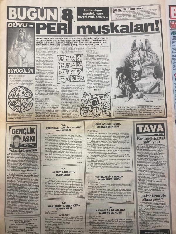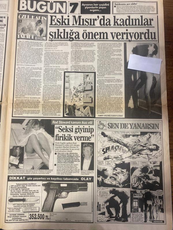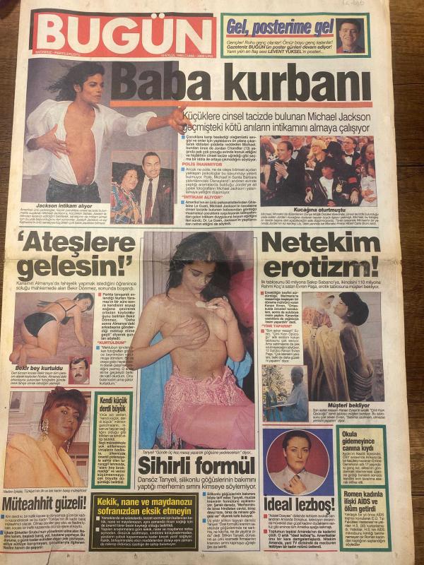 BUGÜN GAZETESİ DOĞUM GÜNÜ HEDİYESİ - 10 EYLÜL 1993 -SADECE 12 SAYFADIR -Michael Jackson haberi-Michael Jackson-Jordan Chandler-Bekir Dönmez-Pargali Nurten-Tanyeli-Rahmi Koç-Nuray Yaşar-Muazzez Abacı-Gülben Ergen-Meltem Demiröz-Hülya Uğur-Bülent Ersoy-Sacha Distel-Volkan Severcan-Nesli Çolak-Gülay Atig-Damla-İlknur Erdoğdu-İsmet Ergezeci-Pisah Bosoh-Ali Karabay-Ametil Sarıoğlu-Mehmet Ali Dilsiz-Yusuf Gedikli-Selçuk Gündoğdu-Rod Steward-Rachel Hunter Baba kurbanı-Ateşlere gelesin-Netekim erotizm-Sihirli formül-Müteahhit güzeli-İdeal lezboş-Saf erkekler bu yazıyı okuyun-Hapishanede seks isyanı-Hülya Uğur’u kızdırdılar-1. Gülben Meltem savaşı başladı-Sefam olsun eşcinsellerin milli marşı-Sacha Distel bu kez Klassis’te-Volkan Severcan ahlaksız teklifler almaya başladım-Garson kızlar-Bebek yüzlü dişi şeytan-Kara Dago-Gülay Atig’in parmak çocuğu-Can’a geleceğine mala gelsin-Havaalanına park etmeyin-Yaz hırsızı-Eski Mısır’da kadınlar şıklığa önem veriyordu-Seksi giyinip frikik verme-Sen de ya adlı eser Türkçe dilindedir.