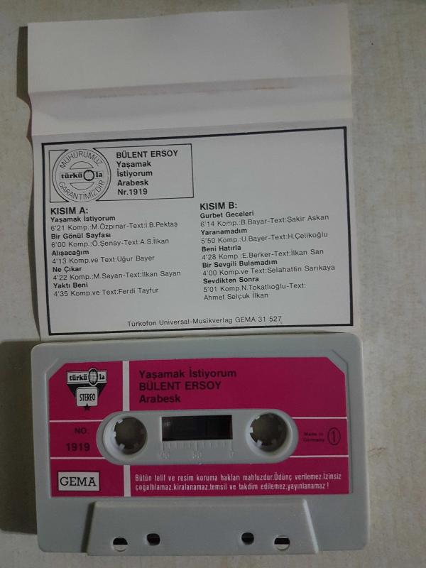 BÜLENT ERSOY 1919 YAŞAMAK İSTİYORUM TÜRKÜLA ALMAN BASKI başlıklı ürün, Efemera, Müzik, Sinema > Müzik, Plak, Kaset, CD > Müzik Kaseti > Yerli Müzik Kaseti kategorisi altında İkinci El olarak satılmaktadır.