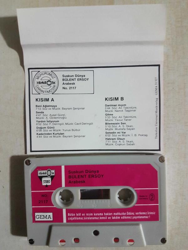 BÜLENT ERSOY 2117 SUSKUN DÜNYAM TÜRKÜLA ALMAN BASKI başlıklı ürün, Efemera, Müzik, Sinema > Müzik, Plak, Kaset, CD > Müzik Kaseti > Yerli Müzik Kaseti kategorisi altında İkinci El olarak satılmaktadır.
