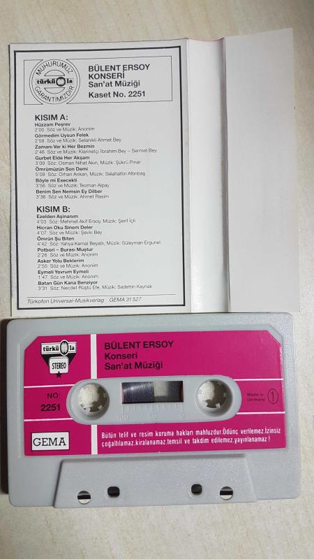 BÜLENT ERSOY 2251 KONSERİ BATAN GÜN KANA BENZİYOR SANAT MÜZİĞİ TÜRKÜLA ALMAN BASKI başlıklı ürün, Efemera, Müzik, Sinema > Müzik, Plak, Kaset, CD > Müzik Kaseti > Yerli Müzik Kaseti kategorisi altında İkinci El olarak satılmaktadır.