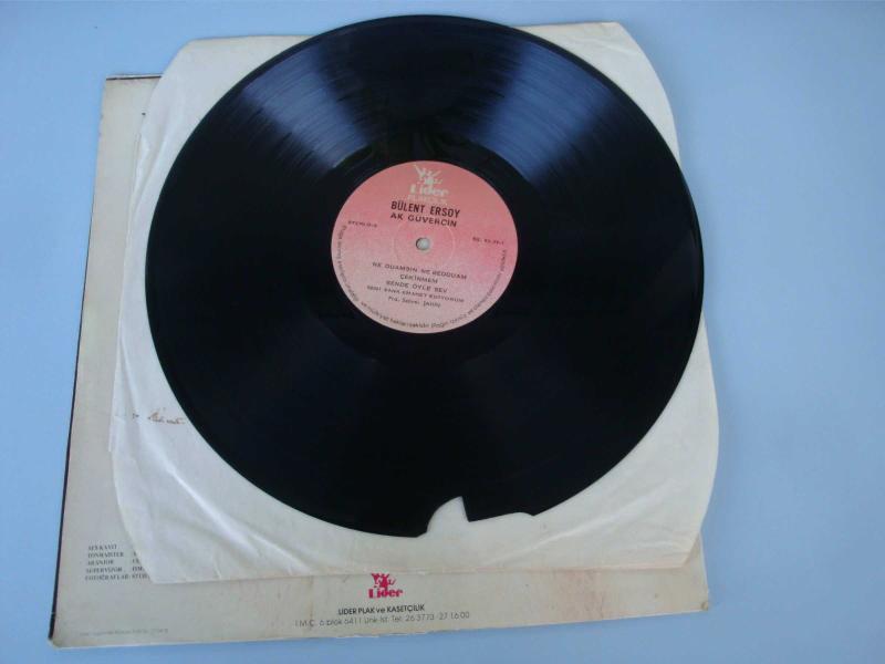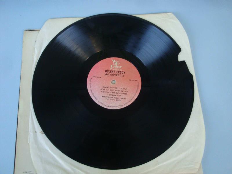 BÜLENT ERSOY " Ak Güvercin " LP LİDER PLAK Açılır Kapak : 9 Plak : 8,5 Kap ÇOK TEMİZ durumda ,, Plak resimlerde de görüleceği üzere her iki yüzde de tam ilk şarkıya denk gelen bölüm kopuk durumda , Plağın diğer durumu çok çok iyi ..