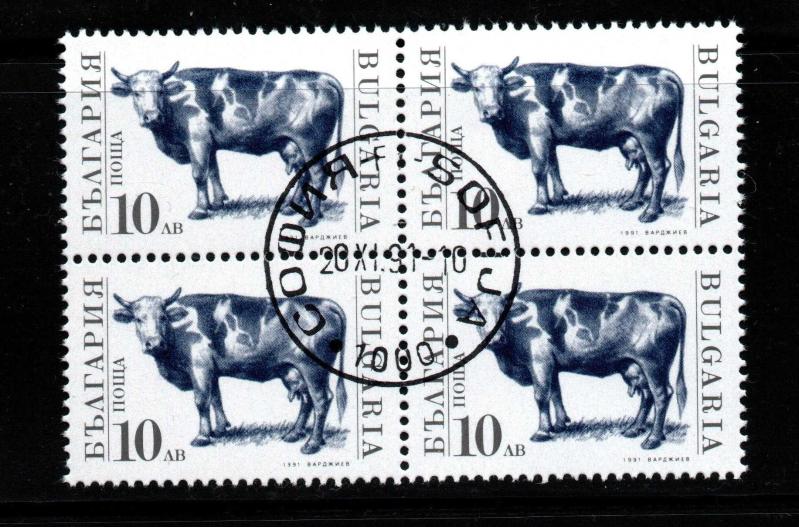 BULGARİSTAN 22.Şubat.1991 ÇİFTLİK HAYVANLARI TAM SERİ 4'LÜ BLOK YIKANMAMIŞ GÖBEK DAMGALI