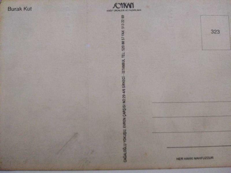 BURAK KUT KARTPOSTALI,ARKASINA YAZILMAMIŞ,RENKLİ, 11,5 X 16 CM EBADINDA, 1 yıl önce satışa sunulmuştur.