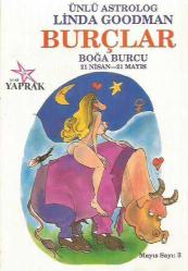 BURÇLAR BOĞA BURCU 21 NİSAN - 21 MAYIS, LİNDA GOODMAN tarafından kaleme alınmıştır. Kitap 1994 yılında STAR YAPRAK YAYINCILIK tarafından [İSTANBUL] yayınlanmıştır. Bu baskının çevirisi SEVİM OR tarafından yapılmıştır. 94 sayfadır. BURÇLAR BOĞA BURCU 21 NİSAN - 21 MAYIS adlı eser Türkçe dilindedir.