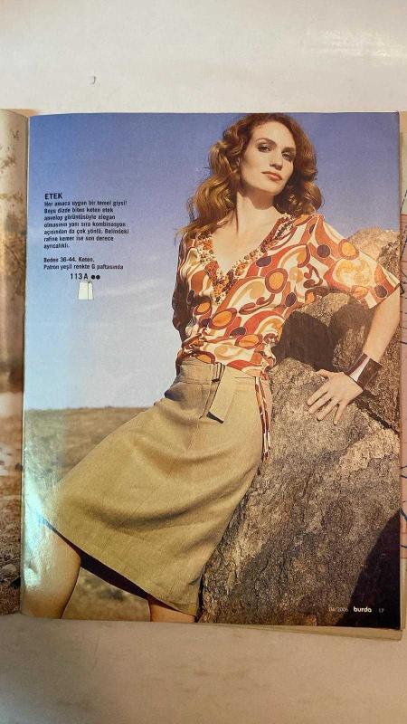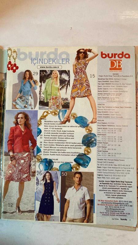 BURDA ELBİSE PATRONLU DERGİ - 2006/04 NİSAN - ERKEKLER İÇİN HAFTA SONU KIYAFETLERİ - ÜNLÜ MARKALARDAN SEÇTİKLERİMİZ - AKSESUARDA YENİ FİKİRLER - KENDİNİZ YAPIN - İLGİNÇ ÇANTA KEMER KOLYE KÜPE BİLEKLİK ÖNERİLERİ - ÇOCUK ÖZEL - HAVLU KUMAŞTAN SPOR GİYSİLER - SICAK DOĞAL TONLARDA ETNİK DESENLER - BAHARDA TREND - MODELLERE TOPLU BAKIŞ - KÜÇÜK BEDEN MODASI - BELE OTURAN BLUZ CEKET VE RAFİNE PİLİ ETEK - GÜNCEL MODA - KETENLE GELEN YAZ FERAHLIĞI - TEMEL PARÇALAR - DENİZCİ STİLİ - PLUS MODA - KENT MODASI - YEŞİL GÜZELLİKLER - TREND - MERCAN VE TURKUVAZ - EKSTRA - ÇOCUK MODASI - KADİFE HAVLU KUMAŞLAR - İLKBAHAR SÜRPRİZLERİ - OPTİ GİZLİ FERMUAR - KETEN MODASI - GÜNEY ÜLKELERİNİN İHTİŞAMI - MODA DÜNYASI DEĞİL MODA SERGİSİ - HAVUZBAŞI GÜZELLİĞİ - BÜYÜK BEDEN - İLKBAHAR RUHU - KÜÇÜK BEDEN - RAFİNE AYRINTILAR - İLGİNÇ CEPLER - DİKKAT ÇEKİCİ BİR SIRT - BONCUK DİZİSİ - KETEN HER ZAMAN ASİL - SAFARİ STİLİ - AFRİKA STİLİ - DOĞAL ŞIKLIK - KETENİN KİMLİĞİ - KETENİN BİÇKİSİ - DİKİŞ Çİ – TAM TAKIM 92 SAYFA adlı eser, Kitap > Süreli Yayınlar > Dergiler > Magazin, Moda kategorisinde İkinci El olarak satıştadır.