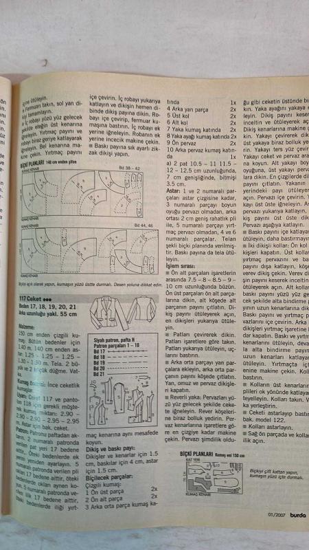 BURDA ELBİSE PATRONLU DERGİ - OCAK 2007 UYGULAMASI KOLAY TAM 41 MODEL - MANTO - AİLE BOYU GÖSTERİ - KİŞİYE GÖRE MODA - YENİ YILA GİRERKEN - ŞIK GÖRÜNTÜSÜ TARTIŞILMAZ BİR TREND - HAFTA SONU PÜTÜRLÜ DERİ KARELİ - TEMEL PARÇALAR HER STİLE UYAR - GÖSTERİ KOSTÜMLERİ MASAL DÜNYASINA HOŞ GELDİNİZ - İLKBAHAR VE YAZA HAZIRLAYACAK MODELLER - GÜNCEL MODA YALIN TASARIMLAR KIBAR AYRINTILAR ASİL RENKLER - KUMAŞ JEAN PANTOLON VE ETEK - MODELLERE TOPLU BAKIŞ - OKUR TASARIMI - KÜÇÜK BEDEN - KISA BEDEN ŞIK OLMANIN KODU - CEKET - BİÇKİ PLANLARI - CEP DETAYLARI - BEL BANDI - YAKA DİKİŞİ - OVERLOK UYGULAMALARI - TAM TAKIM 88 SAYFA, ÖZGÜR ALEV TEZCANLI tarafından kaleme alınmıştır. Kitap DOĞAN BURDA YAYINCILIK tarafından yayınlanmıştır. 88 sayfadır. BURDA ELBİSE PATRONLU DERGİ - OCAK 2007 UYGULAMASI KOLAY TAM 41 MODEL - MANTO - AİLE BOYU GÖSTERİ - KİŞİYE GÖRE MODA - YENİ YILA GİRERKEN - ŞIK GÖRÜNTÜSÜ TARTIŞILMAZ BİR TREND - HAFTA SONU PÜTÜRLÜ DERİ KARELİ - TEMEL PARÇALAR HER STİLE UYAR - GÖSTERİ KOSTÜMLERİ MASAL DÜNYASINA HOŞ GELDİNİZ - İLKBAHAR VE YAZA HAZIRLAYACAK MODELLER - GÜNCEL MODA YALIN TASARIMLAR KIBAR AYRINTILAR ASİL RENKLER - KUMAŞ JEAN PANTOLON VE ETEK - MODELLERE TOPLU BAKIŞ - OKUR TASARIMI - KÜÇÜK BEDEN - KISA BEDEN ŞIK OLMANIN KODU - CEKET - BİÇKİ PLANLARI - CEP DETAYLARI - BEL BANDI - YAKA DİKİŞİ - OVERLOK UYGULAMALARI - TAM TAKIM 88 SAYFA adlı eser Türkçe dilindedir.