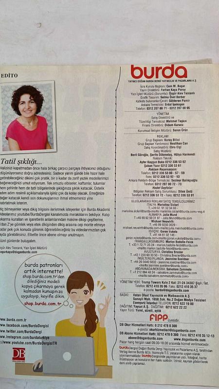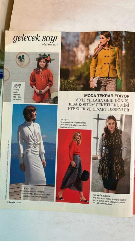 BURDA ELBİSE PATRONLU DERGİ - TEMMUZ 2017 CEM M. BAŞAR - FERHAN KAYA POROY - ÖZGÜR ALEV TEZCANLI - SELMA ÖVET BERBER - GÜLDEREN PAMİR - ERDAL İPEKEŞEN - MEHMET TAŞKIN - DİDEM KURUCU - SEREN ÜRÜN - KORAY BİLİCİ - NESLİHAN CAN - EBRU ELÇİ - BERİL GÜROĞLU - ŞERİFE DÖKMETAŞ - HÜLYA HANKENDİ - AYFER KAYGUN - ŞABAN YAZIR - SEZİNUR BALIKÇIOĞLU - DİLEK ÜNLÜ - MARIOLINA SICLARI - JULIA MUND - MICHAEL NEUWIRTH - GORAN VUKOTA - MARION BADOLLE-FEICK - CHRISTINA BRESLER - JEANNINE SOELDNER - SALVATORE ZAMMUTO GÖKYÜZÜ MAVİSİ - KÜÇÜKLERE RAHAT GİYSİLER - GÜNEŞLİ GÜNLERE - YAZLIK ELBİSELER - MAYO BODY ŞORT - YAZ ŞIKLIĞI - DİKİŞ OKULU - KISA TULUM - PATRON UYUMU - TEK OMUZLU ELBİSE - KAFTAN - TULUM - BLUZ - TİĞ İŞİ BÜSTİYER - ŞORT - GELECEK SAYI - SELAM ÇOCUK - MODA TEKRAR EDİYOR - VAYYY - SOFT MODA - GÜNLÜK ŞIKLIK - TAM TAKIM 76 SAYFA adlı eser, Kitap > Süreli Yayınlar > Dergiler > Magazin, Moda kategorisinde İkinci El olarak satıştadır.