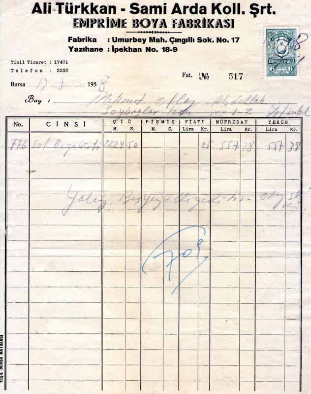 BURSA FATURA .1958 ....ALİ TÜRKKAN ...SAMİ ARDA R .....MEHMET OFLAZ... ABDULLAH ÇINAR .. İSTANBUL, en son 5 ay önce güncellenmiştir.