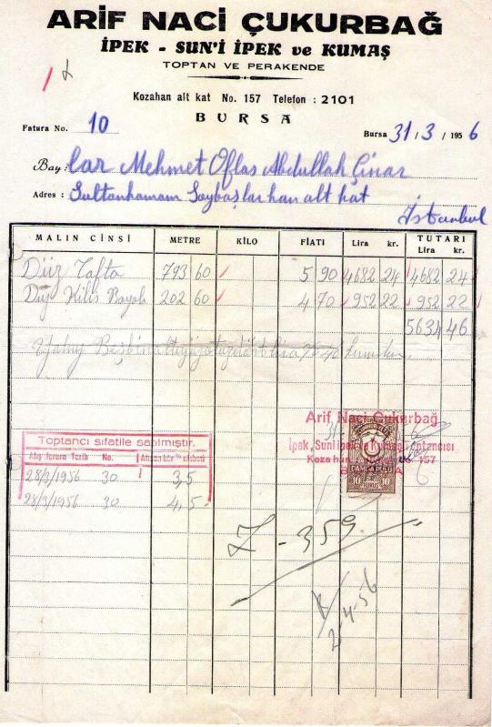 BURSA FATURA. ARİF NACİ ÇUKURBAĞ 1956 MEHMET OFLAZ... ABDULLAH ÇINAR, en son 5 ay önce güncellenmiştir.