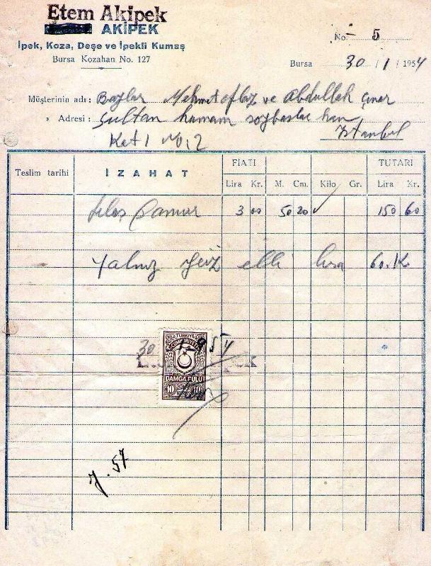BURSA FATURA. ETEM AKİPEK 1954 MEHMET OFLAZ... ABDULLAH ÇINAR, en son 5 ay önce güncellenmiştir.