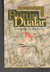BÜTÜN DUALAR - OKUNUŞU ve MEALİ İLE, DR. ABDÜLVEHHAB ÖZTÜRK tarafından kaleme alınmıştır. Kitap 2002 yılında TİMAŞ YAYINLARI tarafından [İSTANBUL] yayınlanmıştır. 444 sayfadır. BÜTÜN DUALAR - OKUNUŞU ve MEALİ İLE adlı eser Türkçe dilindedir.